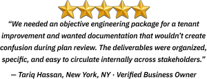 Coordinated commercial project packages with multi-discipline plan sets as required, plus permitting support and field verification when needed.