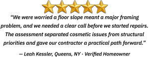 Detailed on-site evaluation following damage, suspected failure, or a claim-related concern. You’ll receive signed documentation with objective findings and recommendations for next steps; engineered plan sets are not included.